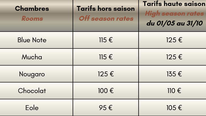 Table d'hôtes on weekends and by reservation 48h in advance - €30